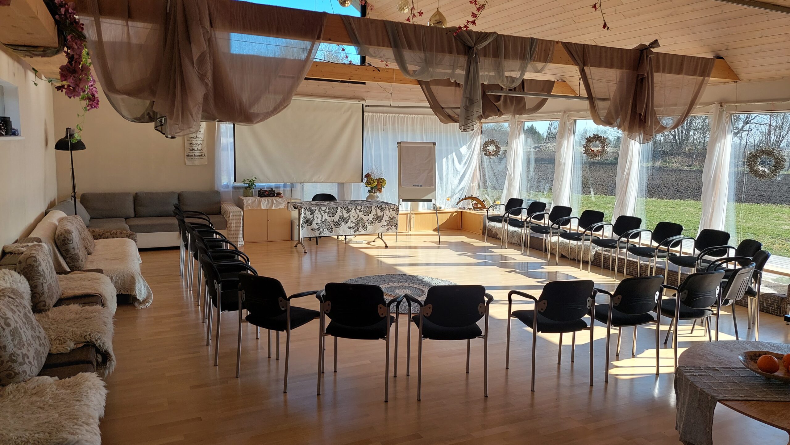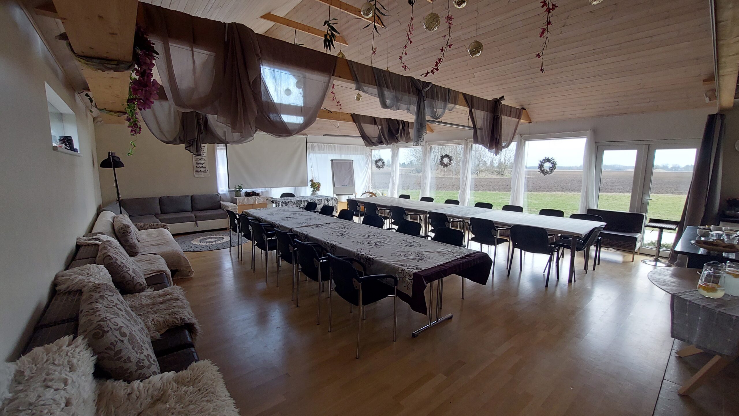 Ruum ja atmosfäär – avar, soe ja inspireeriv keskkond looduse keskel, sobiv nii pidulikuks tähistamiseks kui vabamas vormis koosviibimiseks.